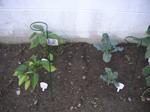 The plants on the left are green and yellow peppers. The two on the right are both broccoli. I’ve never grown broccoli. Both plants have baby peppers and broccoli started and they’re adorable. Close-ups next week…maybe.