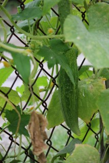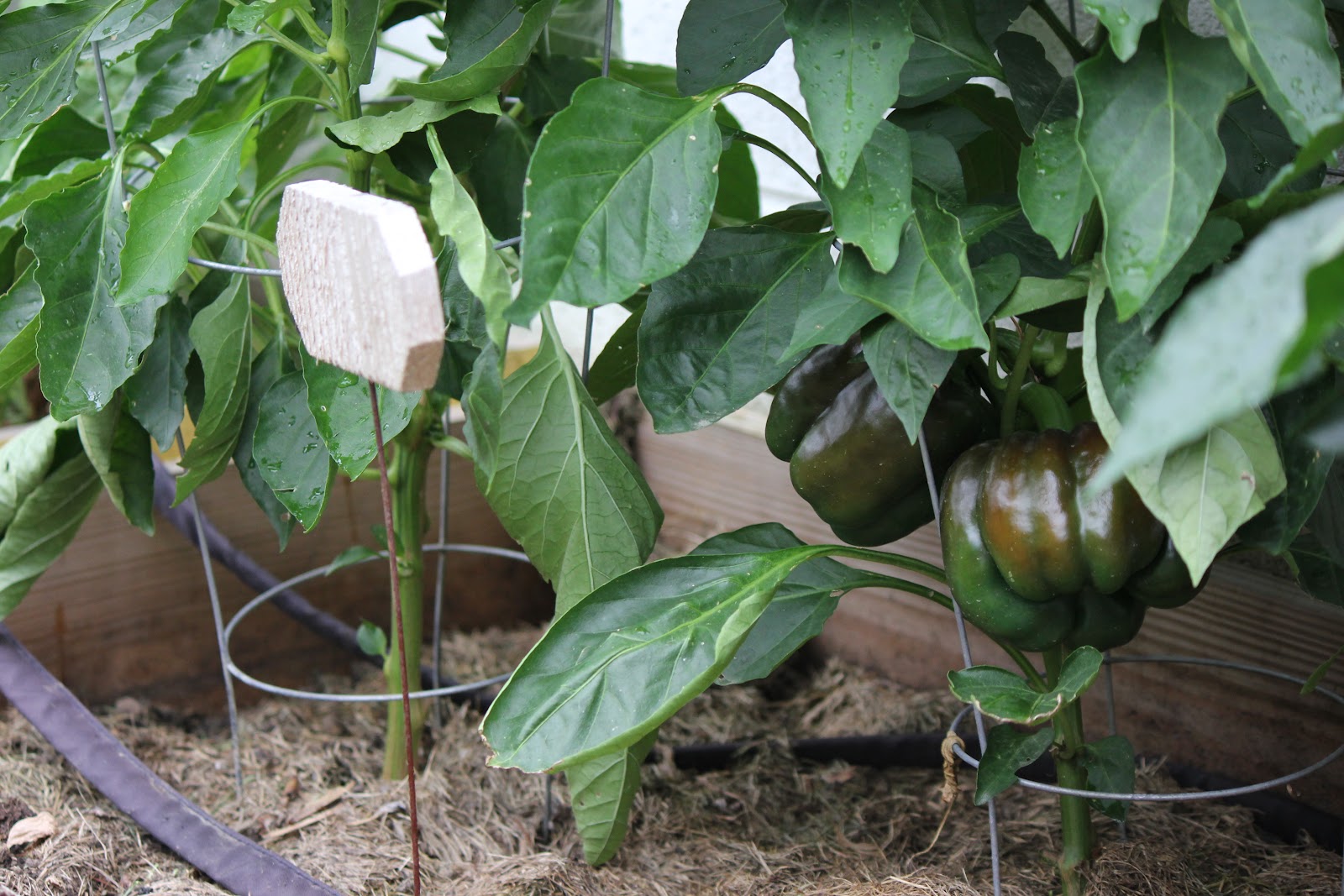 Biggest surprise: I grew a cucumber plant! And, the colored bell peppers have all made it to their destination color! Neither of those things has ever happened for me before. Woo.