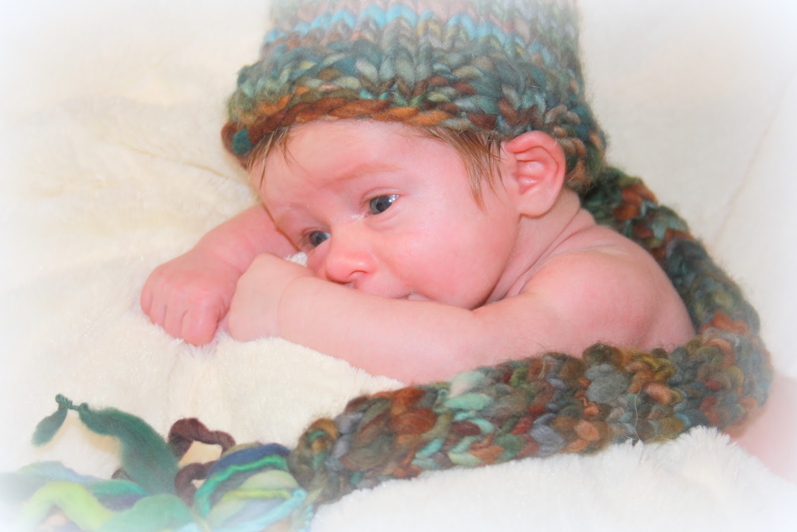 Spent about 2 – 3 hours doing these today. I can tell you I would never survive as a photographer. I do not have the patience for the labor involved…especially with babies/children. We did get lucky with some really beautiful poses though. We haven’t yet mastered any other poses…just the basic. These were my favorites. I’m crossing my fingers that they’ll print well.