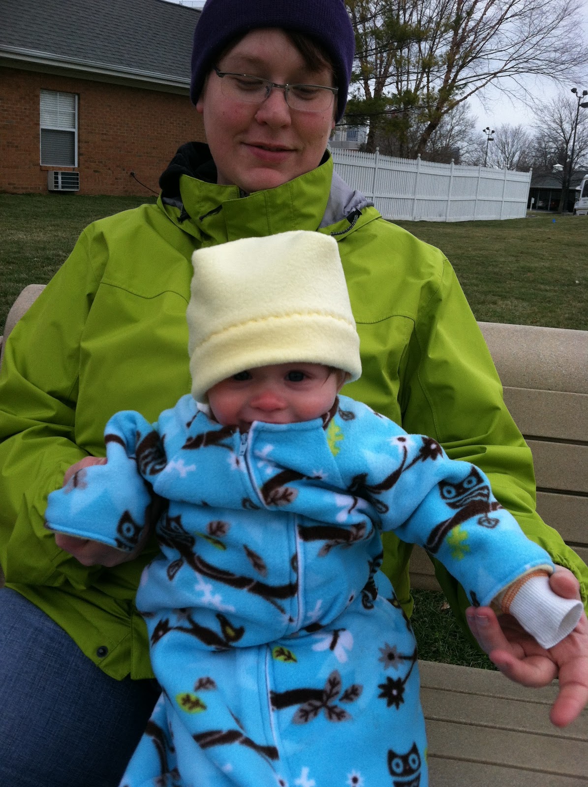 We made it around the dog park in the jogging stroller twice before the whining was louder than the dogs. Trapper and Keeper weren’t really into it either. We stopped on the way to the car and took some pics of Lincoln’s winter “coat.” Grandma B made this for Lincoln as a Christmas present. I’m asking for one in my size next year.