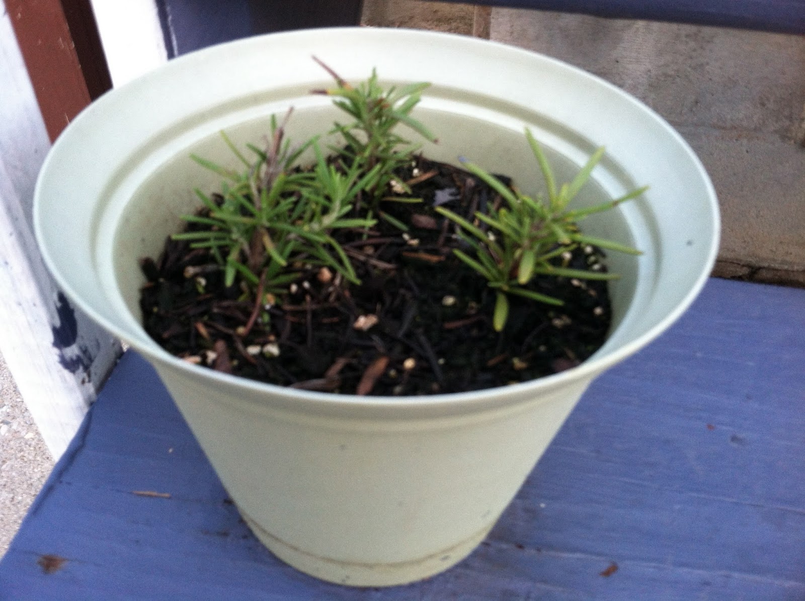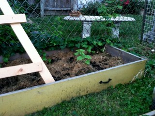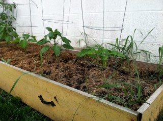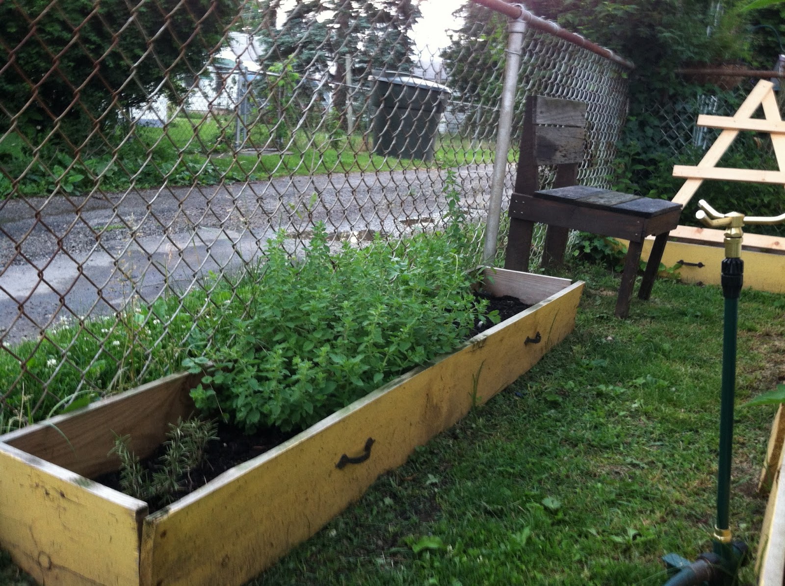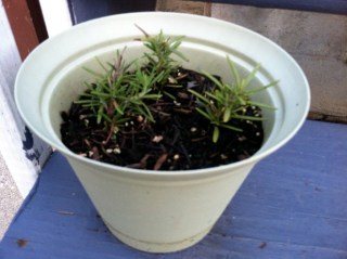 This is the herb box. The rosemary up front are stems picked from that ghastly bush I posed a picture of last time. I also planted some more in a pot. I’ve never propagated rosemary (or any other herbs) successfully, so I’ll have to post again once they’ve lived or died. 🙂