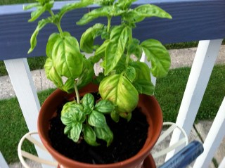 Here’s my potted basil. I’ve got another in the garden. See the leaves in the front and how short they are? These are growing back after I pinched off a long stem…. Looks like I pinched in the right spot.