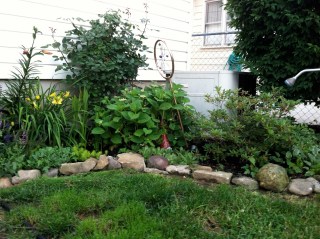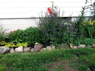 Here are some photos of the perennial beds. It’s a nice mix and this year it looks like it’s finally coming together. We added the stones this year and a lot of the ground cover is new – see the golden colored stuff? That’s new. Also, you can some of the other kind in the 2nd picture over by the lilies – it looks kinda like Asparagus fern, but more hardy. I love this stuff.