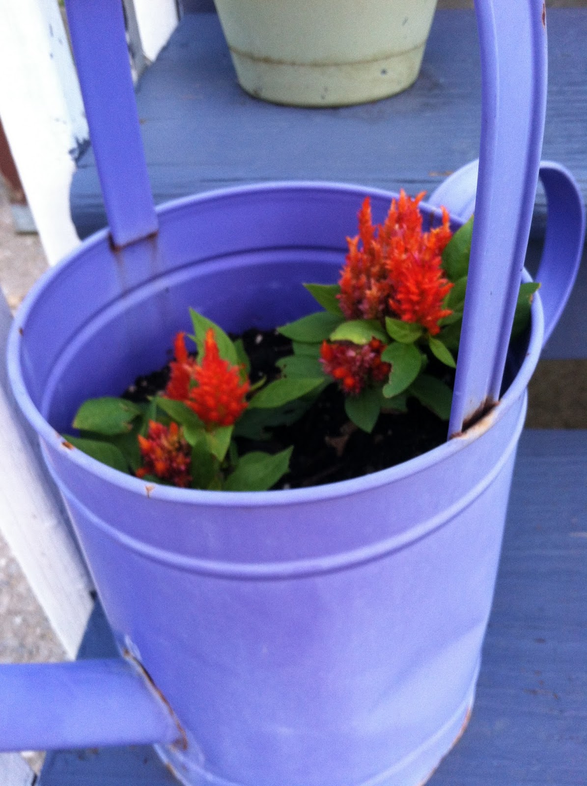 Tomatoes – I cannot remember which varieties we chose this time. I believe 1-heirloom, 1-big boy, 1-roma, and 1-either cherry or grape. All doing fine. I’ve been picking the blossoms off this time around to see if it really does encourage more tomatoes. We shall see!