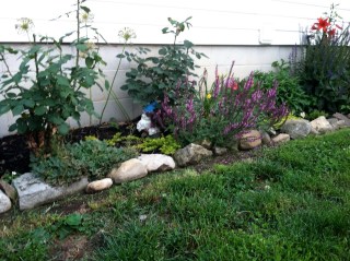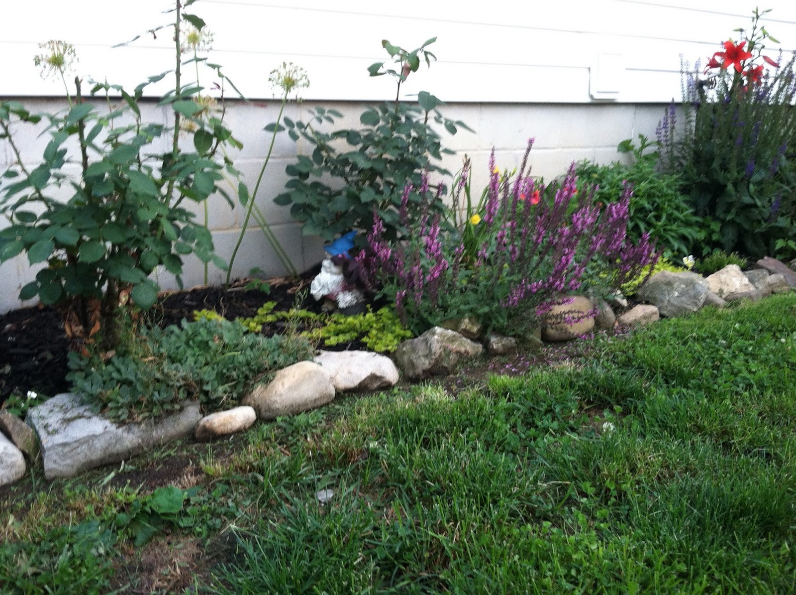 There’s my little gnomie! Hi gnomie! This may be the last you’ll see of the Hydrangea and the pretty bush to the right (no, I can’t remember the name). Our a/c went out last week and they are coming this Friday to replace it. We’re going to have to remove the bushes so that they can get to the unit. I’m hoping that we can just uproot them and keep them in buckets for the day. We’re going to try and put them back afterwards, but….